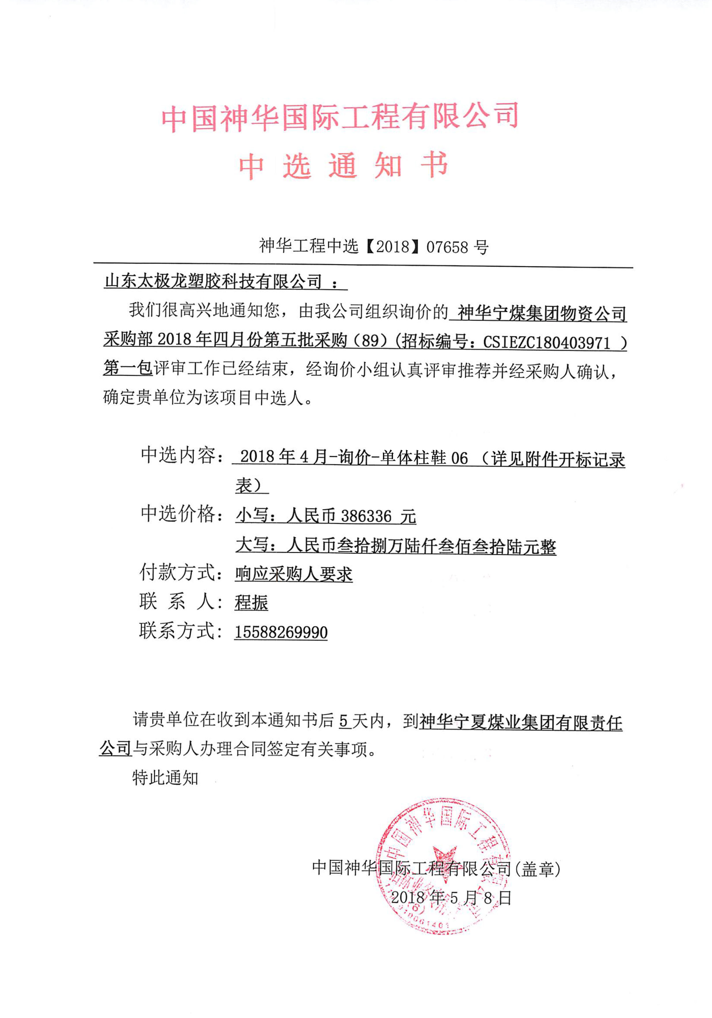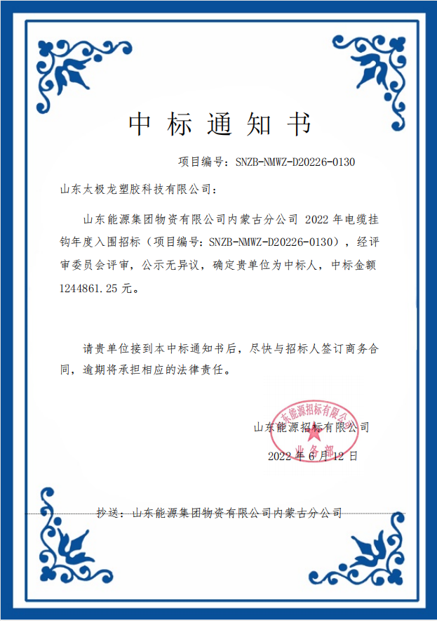 能源集團物資公司鄂爾多斯采購中心2024年度集團級礦用電纜掛鉤項目中標通知